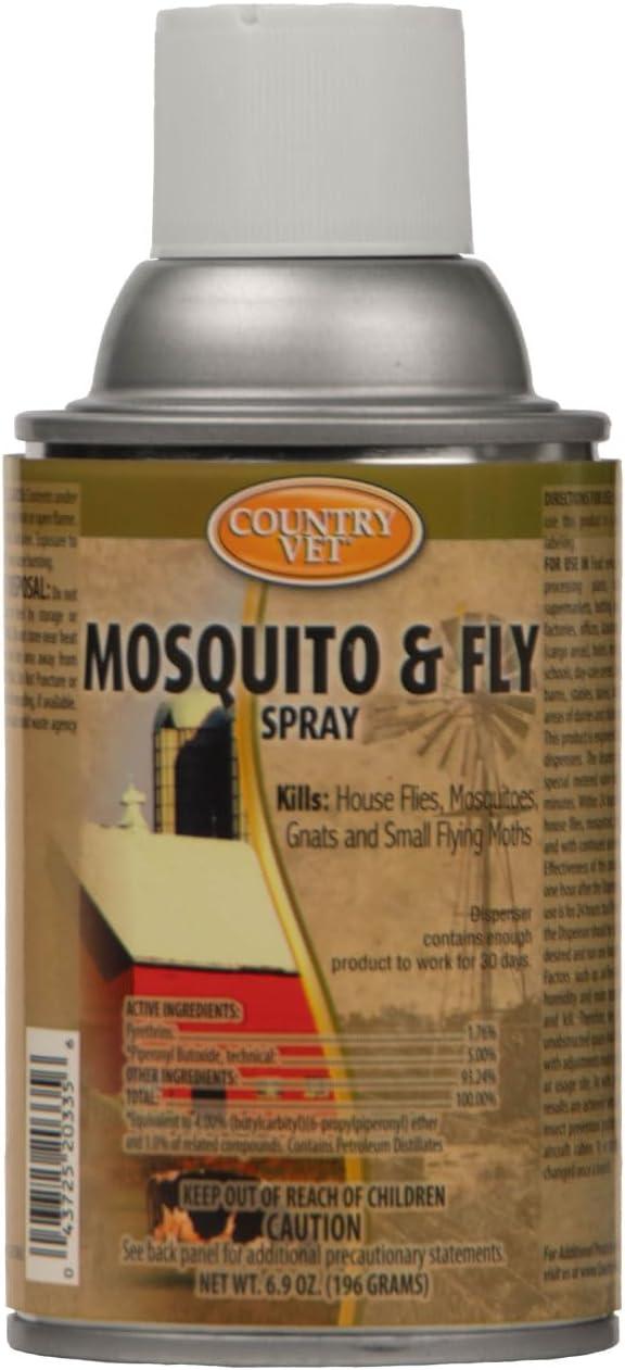 Designed as a refill for the Country Vet automatic metered dispenser, the spray releases a measured burst every 15 minutes, ensuring a steady and controlled dispersal of the active ingredient without overwhelming enclosed spaces. This intermittent release contributes to consistent pest reduction over the full 30-day supply,which amounts to 6.4 ounces of insecticide actively working behind the scenes.